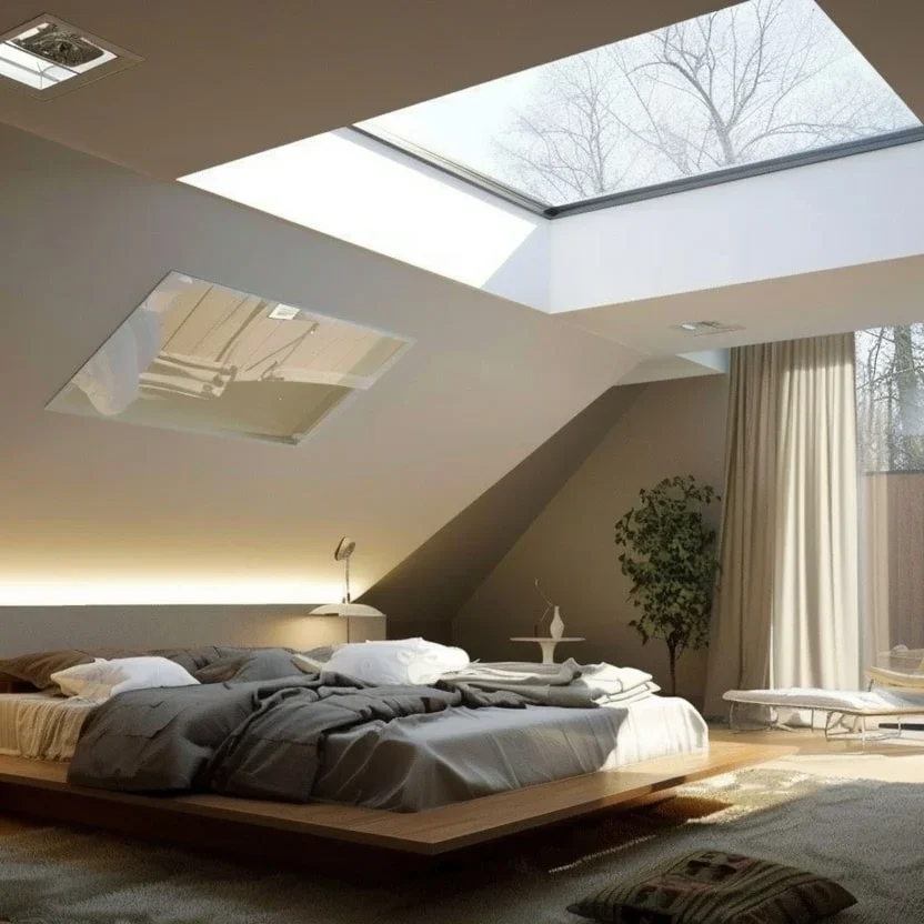 A skylight or roof window allows sunlight to pour in from above, creating a stunning focal point in any home